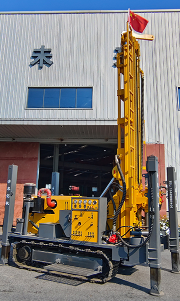 清泉400型潛孔水井鉆機(jī) 發(fā)動(dòng)機(jī)功率:玉柴股份六缸92千瓦。 油泵:美國泊姆克。 動(dòng)力頭馬達(dá): BM6-390。 最大扭矩: 12000 扭米+ 最大提升力: 30噸。 操作閥:三立。 整機(jī)機(jī)重: 8.8噸。 尺寸:長5.8米(底長4.15米),寬1.9米,高2.5米。 鉆孔直徑: 105-400 毫米。 鉆桿直徑:中76/φ89(3米)。 一次性推進(jìn)長度: 6600 毫米。